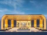整座大堂墙面延续爱马仕灰大理石,顶部水晶灯和墙面壁灯均为全铜打造,大堂接待台采用产自意大利山脉的普拉达绿奢石一体打造而成。