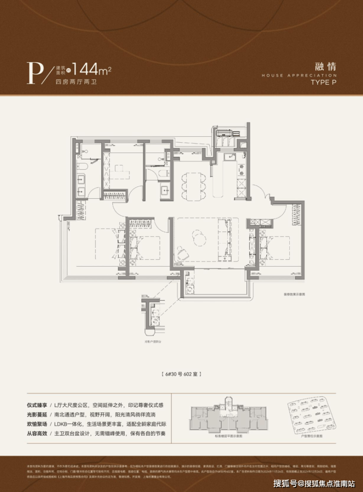 在建面约110㎡ 户型已有的两点之上再度升级,简约面144㎡户型更加匹配三代同堂、二胎之家。