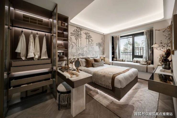 · 主卧酒店式套房+双台盆+270°转角飘窗,尺度与舒适度登峰造极。