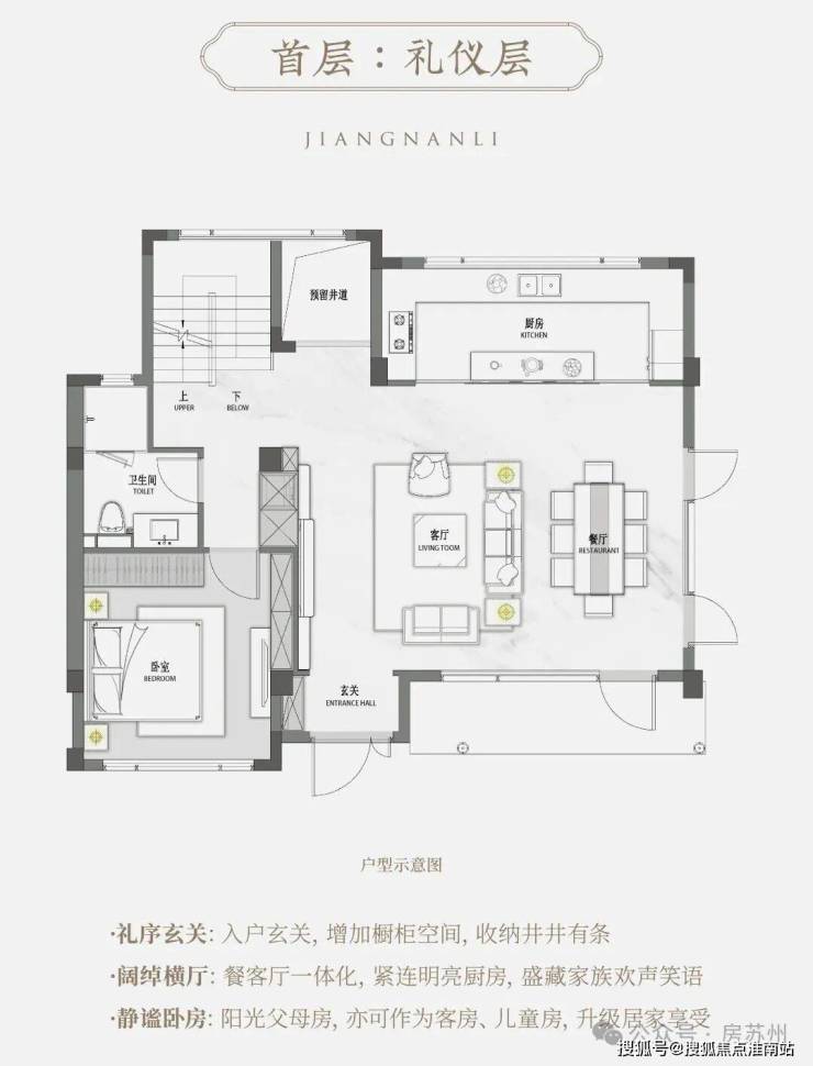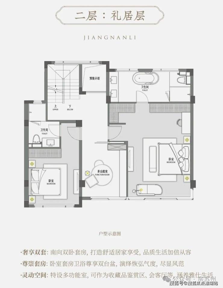 产品户型设计延续江南里经典格局,确保每一户都能实现“ 室室见景,生活融于自然”。建筑立面采用 金镶玉形制, 辉映披檐挂落,再现宋代建筑的清雅风骨;室内空间则引入现代宽厅设计理念,实现传统美学与现代生活的完美融合。
