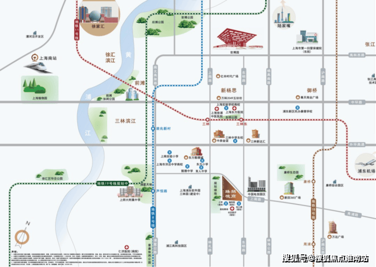前滩南三林,坐享外环/中环/南北高架,上海三大城市动脉,从项目出发,经上南路转华夏西路,直线距离约5KM直达前滩核心区;经由上南路转世博大道,直连陆家嘴环路,即达国金中心、正大广场陆家嘴核心商圈;经由外环高架入口,转南北高架,过内环高架达徐家汇商圈。外环/中环/南北高架三大城市动脉,串联前滩、陆家嘴、人民广场、徐家汇等一级城市节点,形成都心超级通达区。