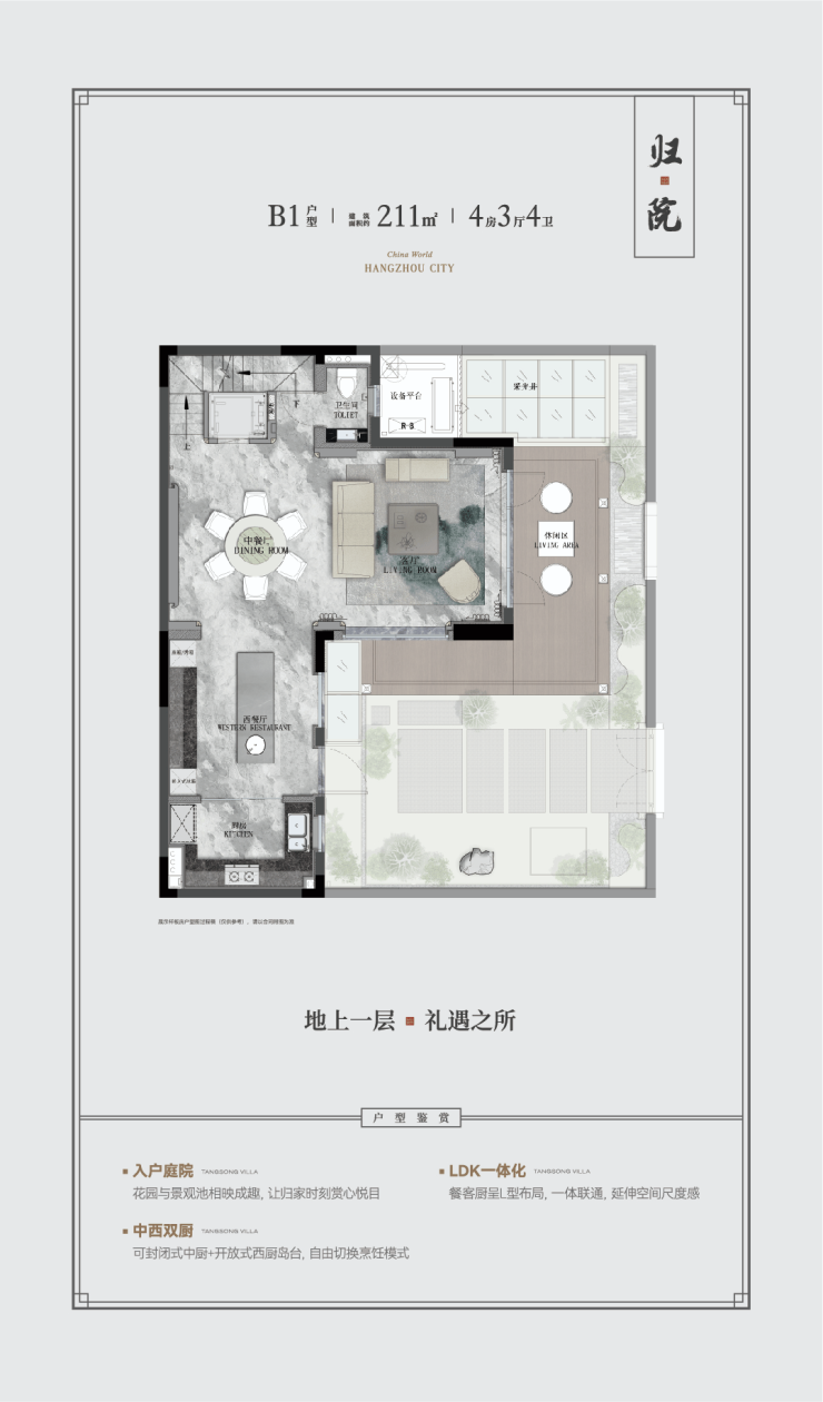 在售户型面积:170-230㎡宋风合院(实得面积超350㎡)