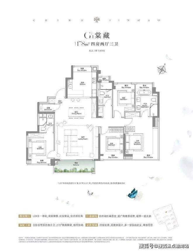 户型涵盖建面约85-178㎡的2-5房,采用LDKB一体化设计、270度全景飘窗等创新空间布局。
