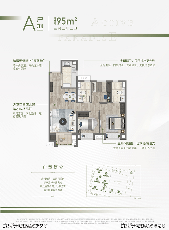建面约86-95㎡2-3房
