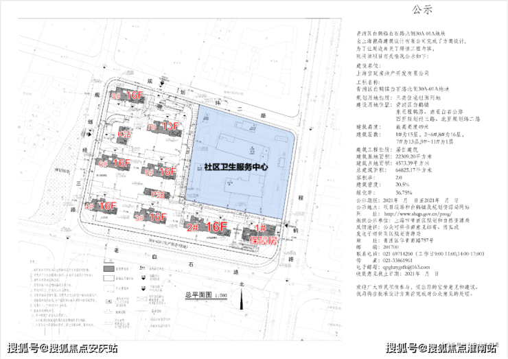 根据项目较新公示的设计方案,项目将建造包括1栋15F住宅,6栋16F住宅,1栋13F住宅,还有一个社区卫生服务中心公公共设施配套。将提供至少410套房源,100%全装修,其中中小户型占比60%。