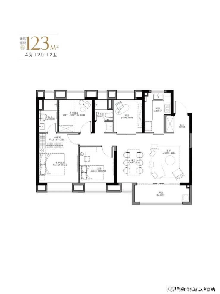 产品:103㎡、107㎡的三房两厅两卫及123㎡、129㎡的四房两厅两卫。