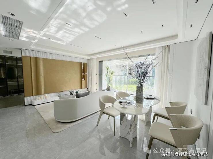 1、流体美学:游艇曲线,鎏⾦塔冠:微弧阳台,环幕之境:轻法雅奢的圆润线条,比如入户门头: