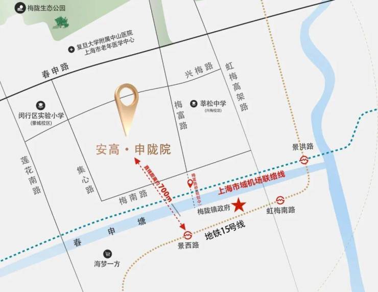 项目位于上海市闵行区梅陇镇兴梅路1199弄,是安高地产深耕上海二十余载后打造的高端人居标杆作品,择址闵行核心辐射圈,紧邻轨交5号线与15号线双轨交汇,步行约8分钟可达站点,快速通达徐家汇、莘庄、紫竹高新区等城市核心节点。