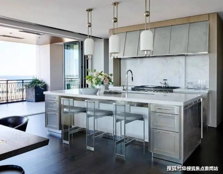 从客厅开始,整个空间都遍布着蓝色的元素,设计师以星座为主题进行设计,搭配上JamesThomas的茶几、HollyHunt的沙发、Minotti的扶手椅和AndriannaShamaris的边桌,打造既高级又充满梦幻感的居家空间.