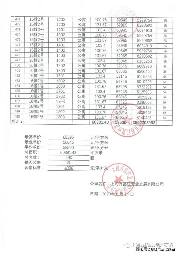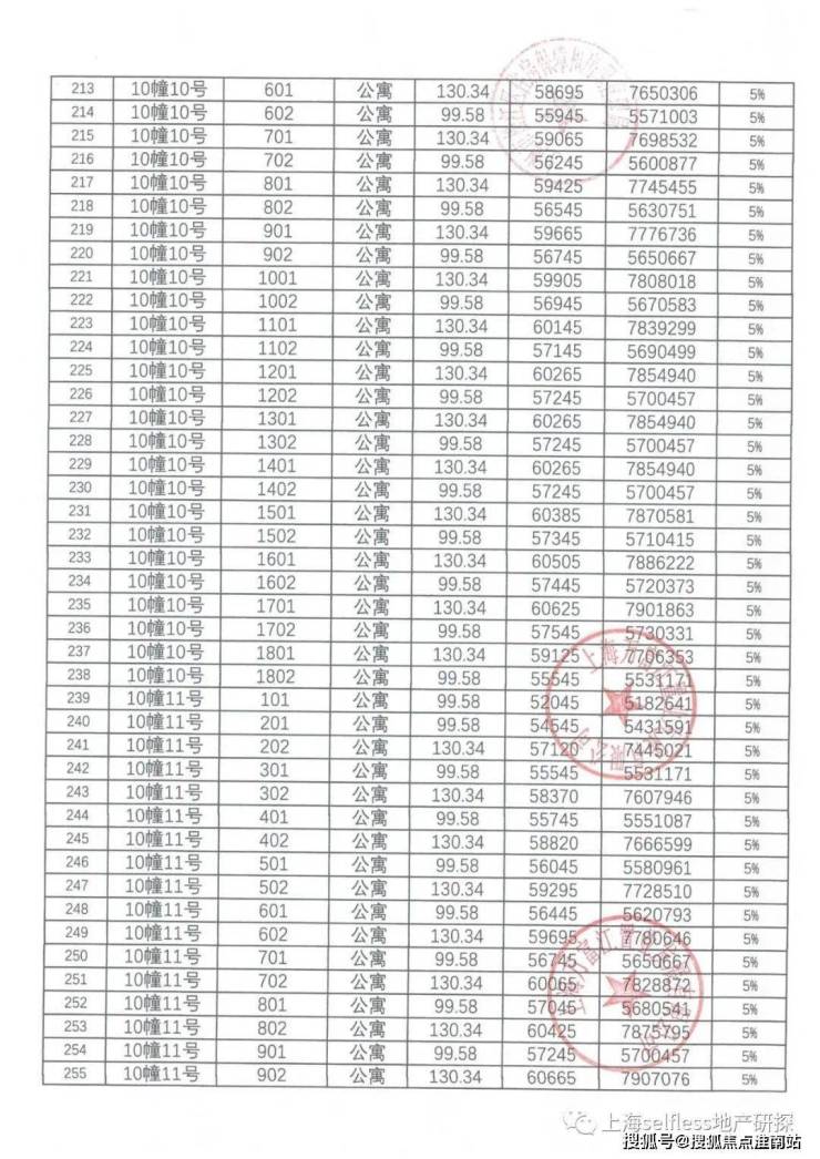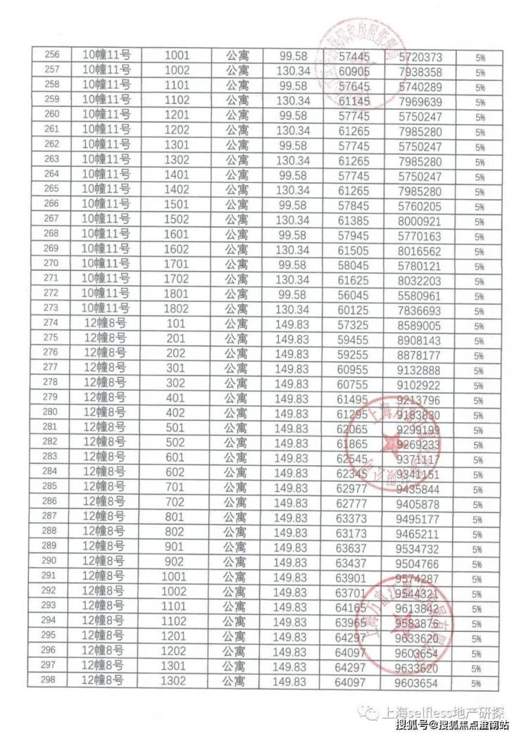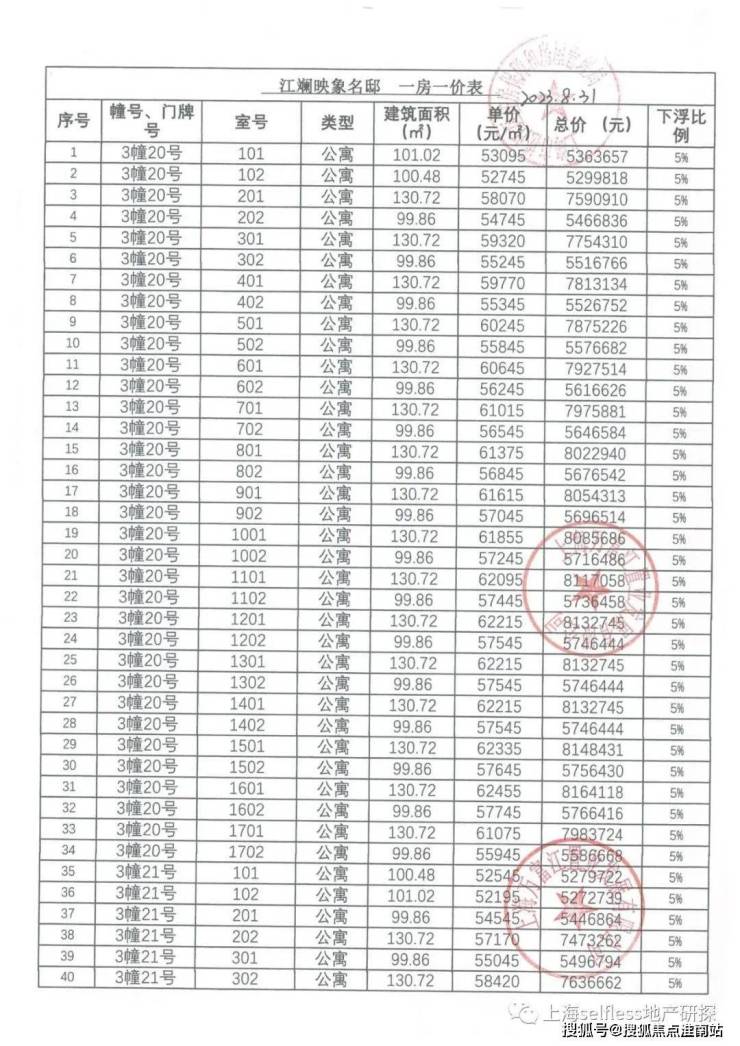 一房一价表:
