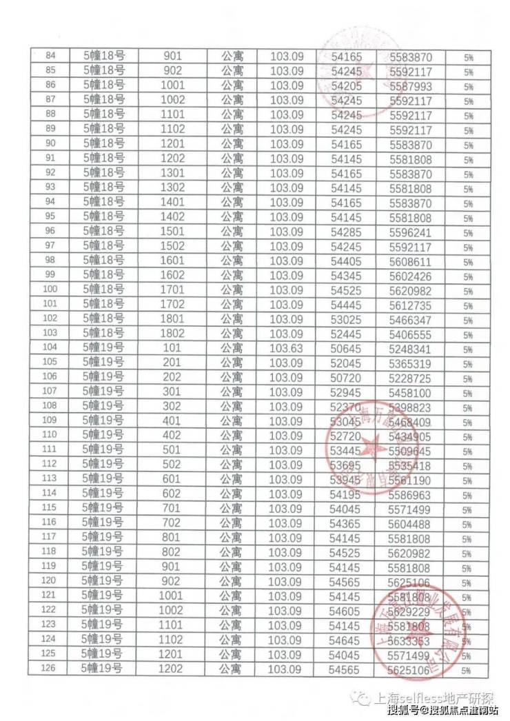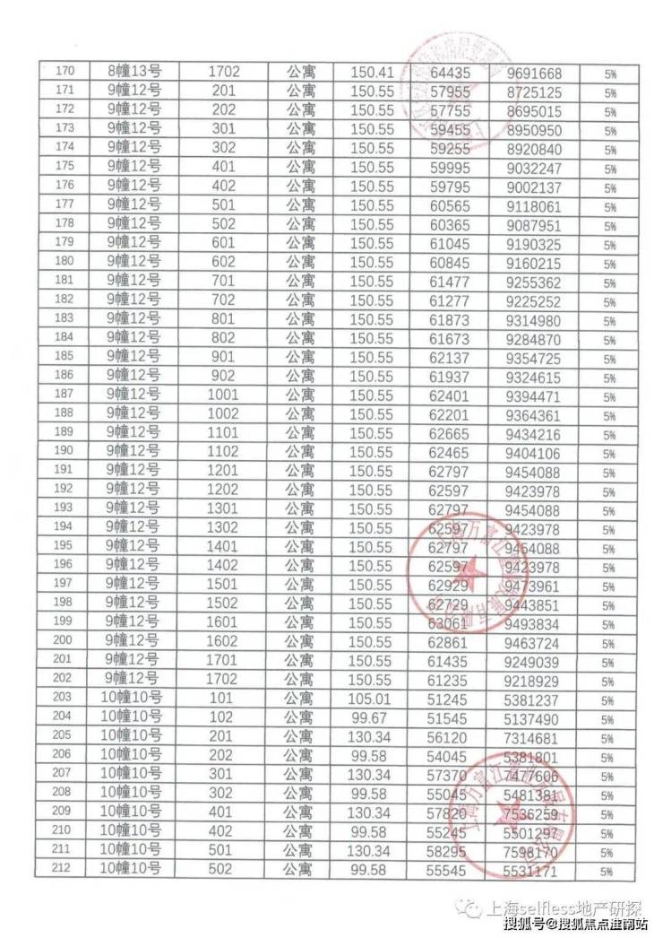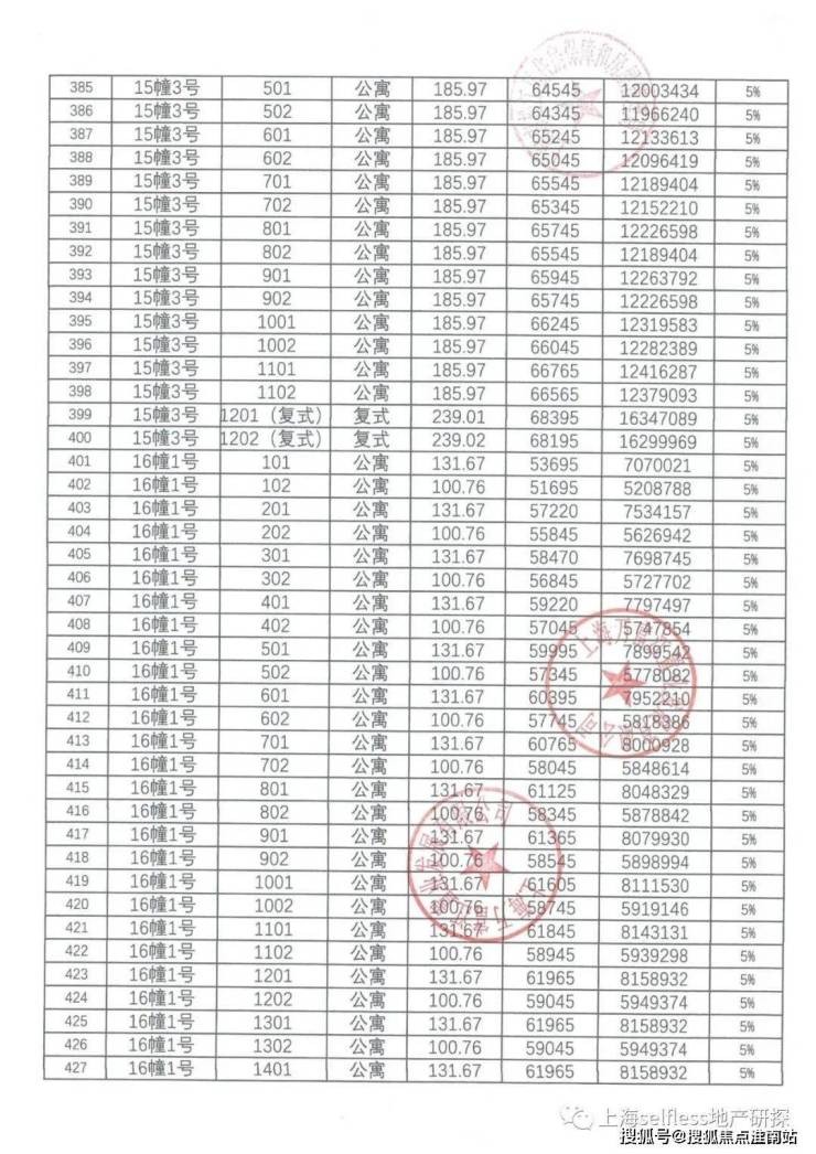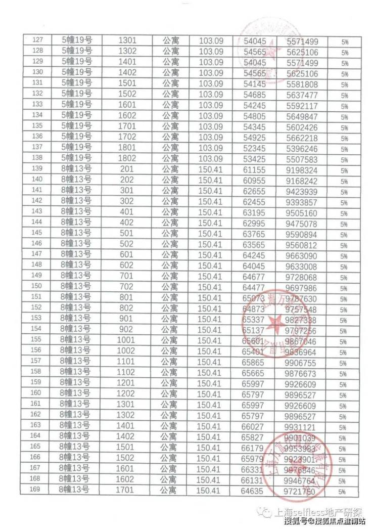 一房一价表: