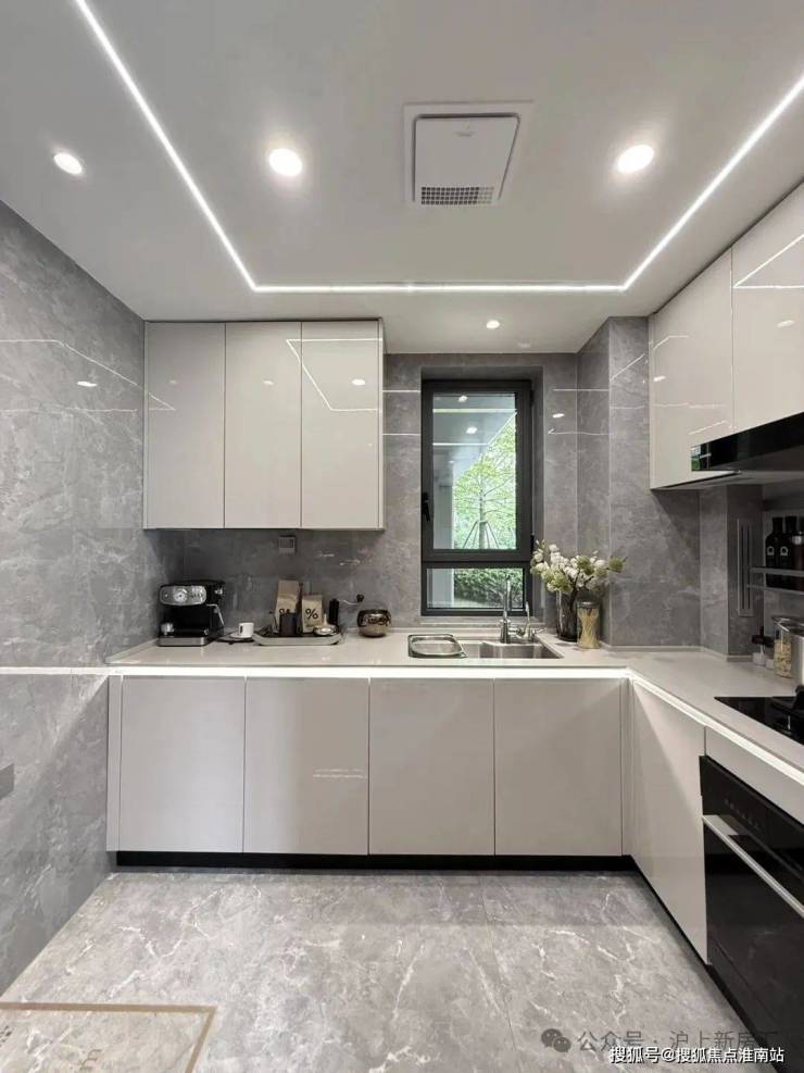 橱柜收纳系统:特别预置洗碗机点位、柜内下拉篮式设计、不锈钢挡油板、柜下操作灯、烹饪全流程功能动线一体化设计;