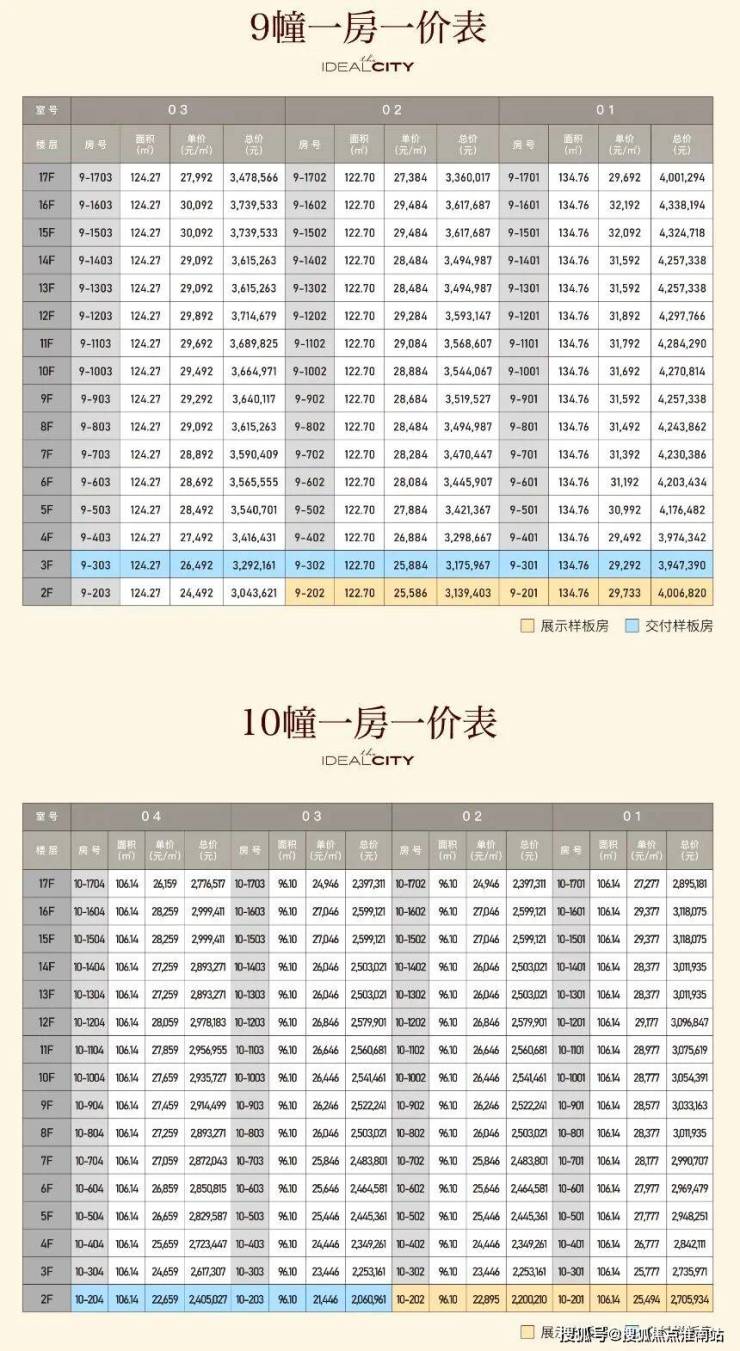 首开均价约27928.35元/平,最低总价约206万起!9幢,一共48套,均价29355元/平;10幢,一共64套,均价26581元/平。