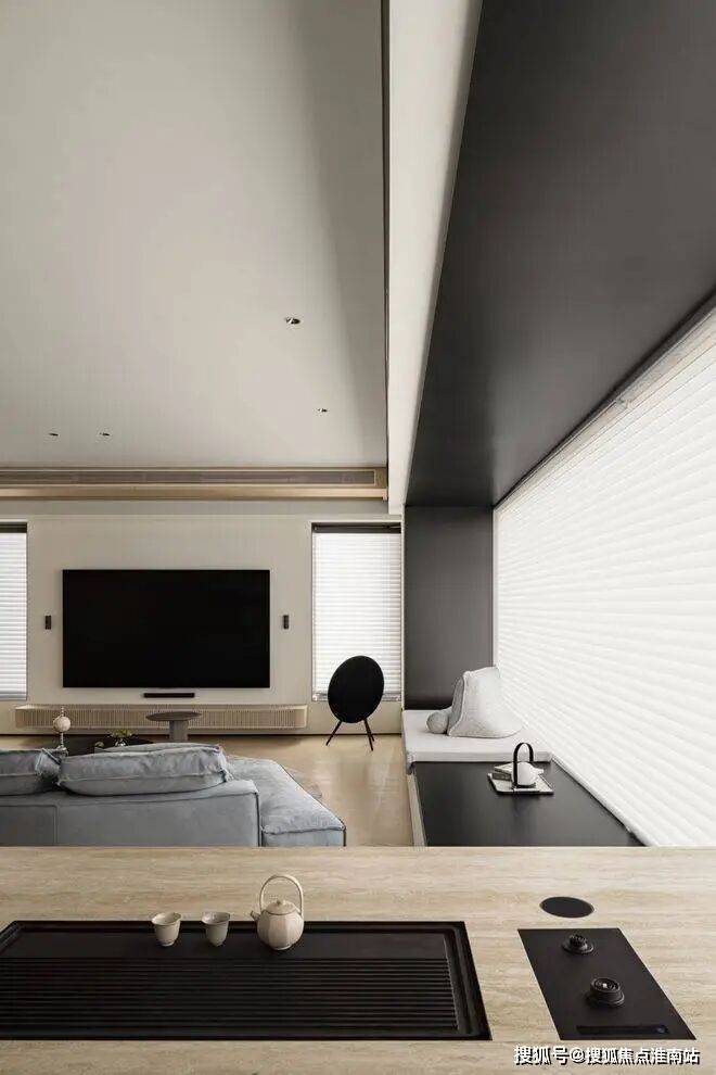 旁边半围合的室外会客厅,「长」在水庭中央;下沉式会客卡座,可以享受独处时光,也可以和邻居友人聊聊时事财经。
