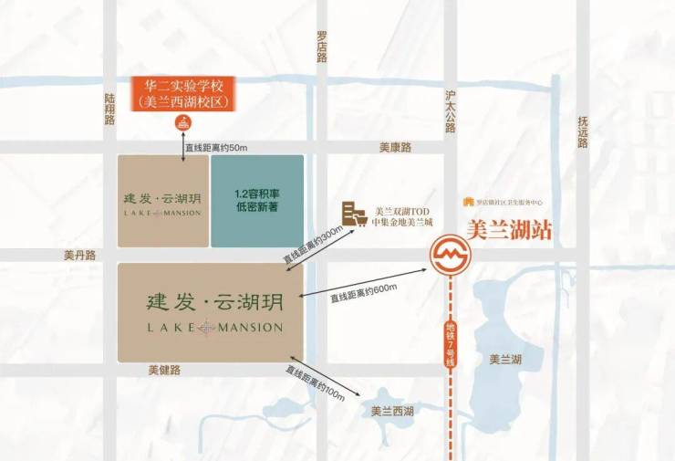 除此之外,项目距离7号线美兰湖站直线仅约600米,步行可达。且7号线直达静安寺、徐汇滨江,换乘11、14、15号线,通达上海核心CBD。
