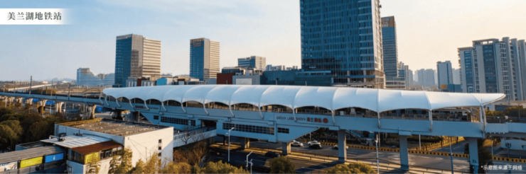 直线约300米就是中集金地美兰城TOD,目前已开业,总体量约70万方,其中商业约30万方,高标首店云集,吃喝玩乐购一站式满足。