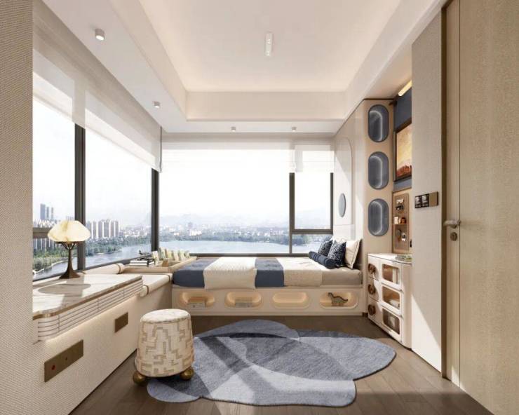 每个房间都可轻松摆放下一张床+通顶衣柜,两侧仍剩余充足活动空间,尺度感足够舒适,真正的三房体验。