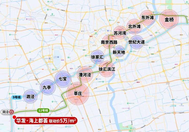 一条南北走向的9号线,直达漕河泾、徐家汇等地区;一条东西走向的12号线(西延伸段在建中),贯穿了包括莘庄、七宝、漕河泾、徐汇滨江、内环中央活动区、北外滩、东外滩一直到浦东金色中环带的金桥副中心。