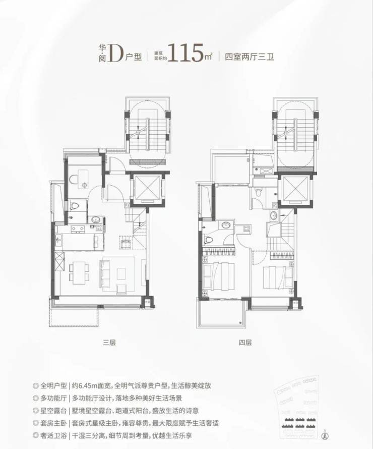 当然项目建面约115-133㎡叠墅都实现了4房功能性,无疑是适配二胎家庭的终极改善产品!