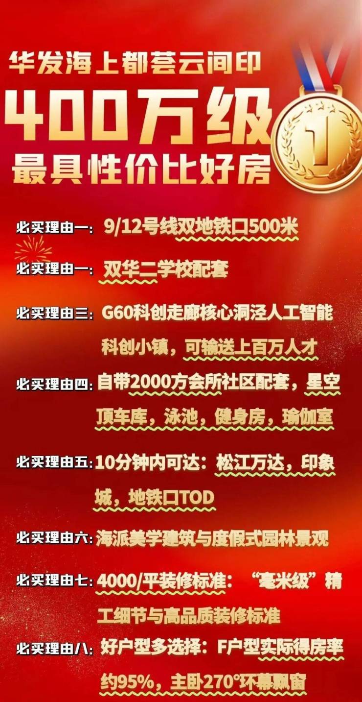 松江9号线、12号线(西延伸在建),双轨交+双TOD大型住宅社区【华发海上都荟】出来一批特价房:综合折扣85折起!直线距离双轨交洞泾站仅约500米,此次推出建面约91-101㎡高层、建面约92-122㎡叠加,总价约450万级即可入手双轨墅区品质人居!