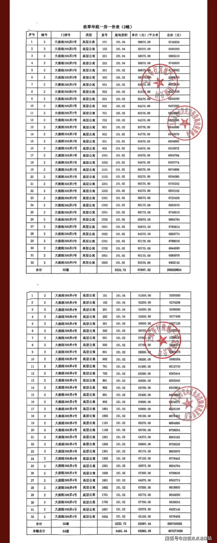 完整一房一价表如下: