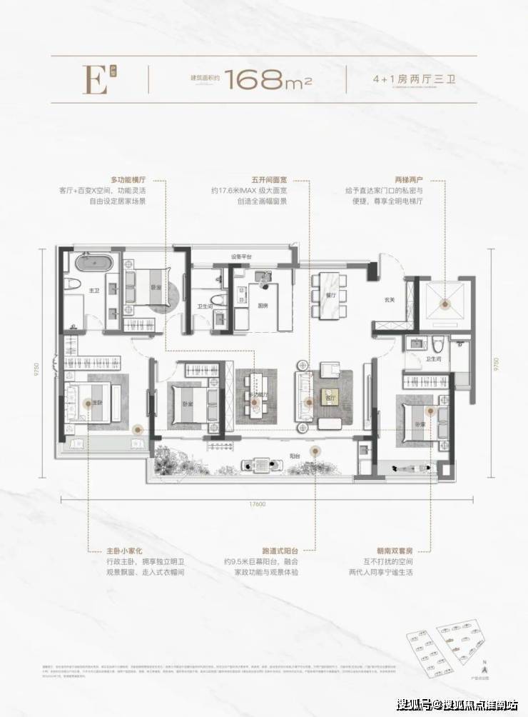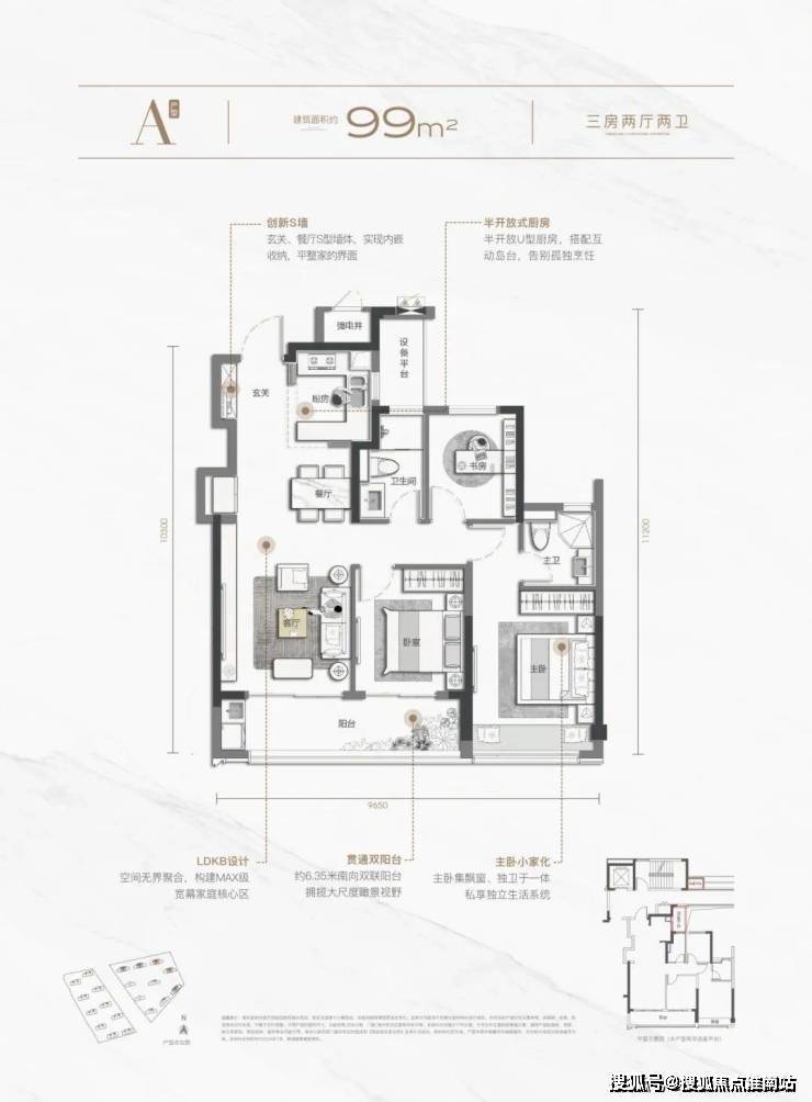 主力户型98㎡三房至189㎡五房,得房率约81%4