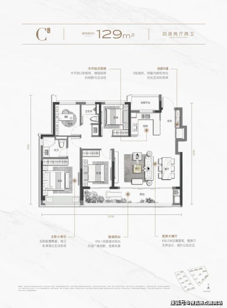 精装均价:22600元/㎡(总价292万起)8