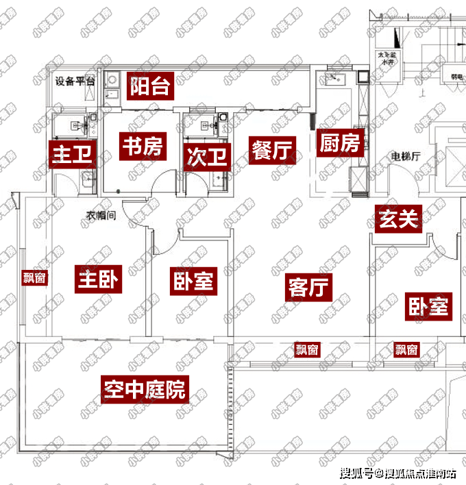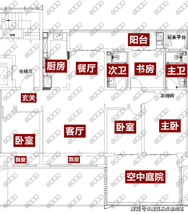 南向的主卧和次卧有一个空中庭院