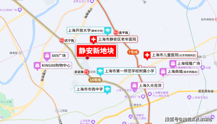 项目距地铁14号线武定路站约260米,步行可达静安寺商圈,1站直达南京西路,周边汇聚恒隆广场、芮欧百货等顶级商业体,生活便利性极强。