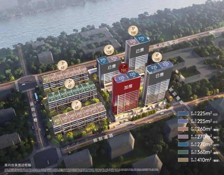 央企华润置地,上城区安琪儿板块,占地面积约2.2万方,建筑面积约7.8万方,容积率2.3,项目规划4幢12-19F高层+3幢6F叠墅(含两叠和三叠),总户数186户(高层130户+叠墅56户)。目前加推在售7号楼为高层面积段约225-227㎡,备案价最低约1390万起。少量270㎡一方一价。