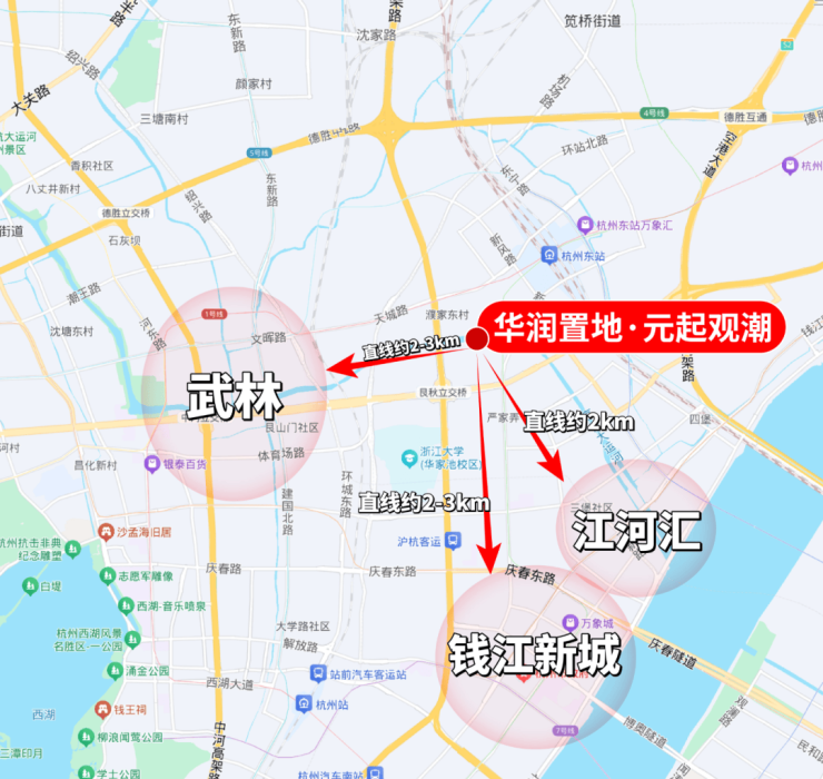 【华润元起观潮】,坐拥地段优势,近地铁 / 商圈 / 江景 / 学校,区位稀缺性突出。
