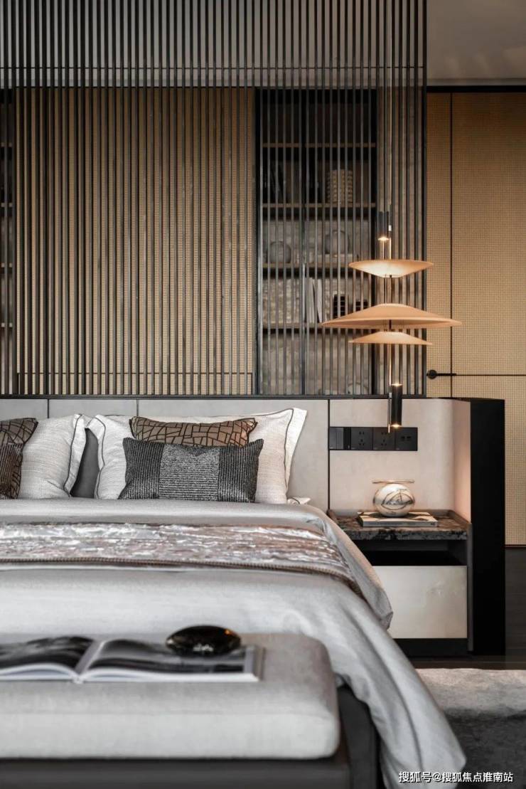 次卧的色调相对更为深邃,设计师通过不同的色彩选择,为静谧的氛围赋予了别样的诠释。有的空间明亮温暖,有的则内敛深沉,各种高品质材料相互搭配,编织出柔软而舒适的触感,再辅以恰到好处的艺术装饰,将空间的高级感提升到新的高度。