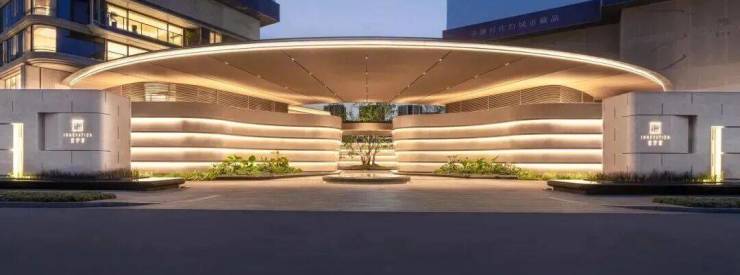 因项目整体抬高,从下沉庭院到架空层“空中花园”的落差极大,形成独特的峡谷地貌,杭序府的设计团队汲取九溪烟树为造园灵感,打造一个立体多维的城市溪谷交互园林;因项目毗邻江岸,杭序府的外立面以“站立的江潮”为灵感,