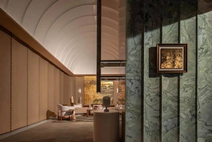 地上二层是约5米高的架空层,作为杭州首个与西泠印社杭州书画社深度合作住宅项目,杭序府楼幢架空层内打造西泠文房艺术空间,拥有金石文化定制主题会所服务系统,提供独具杭州文脉特色的定制化社区服务。