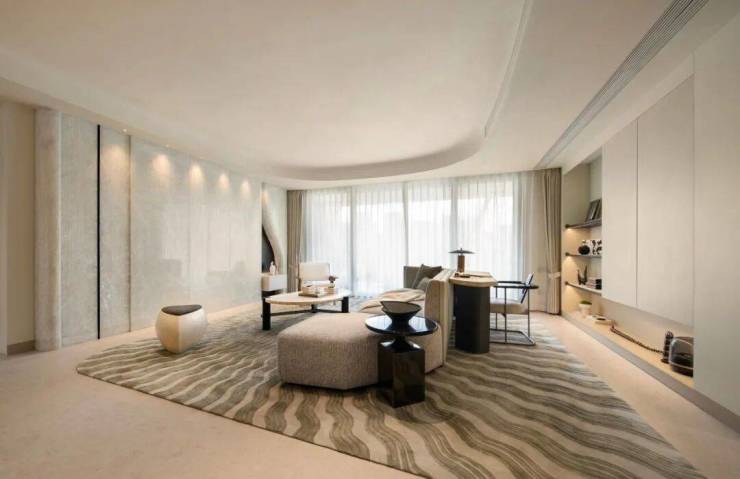 漆砚260㎡户型:户型参考漆砚制作方式,以“玉德”显质地,以“金声”隐赞誉,主卧吊顶还原砚台之形,以漆砚般闪耀琢序空间。