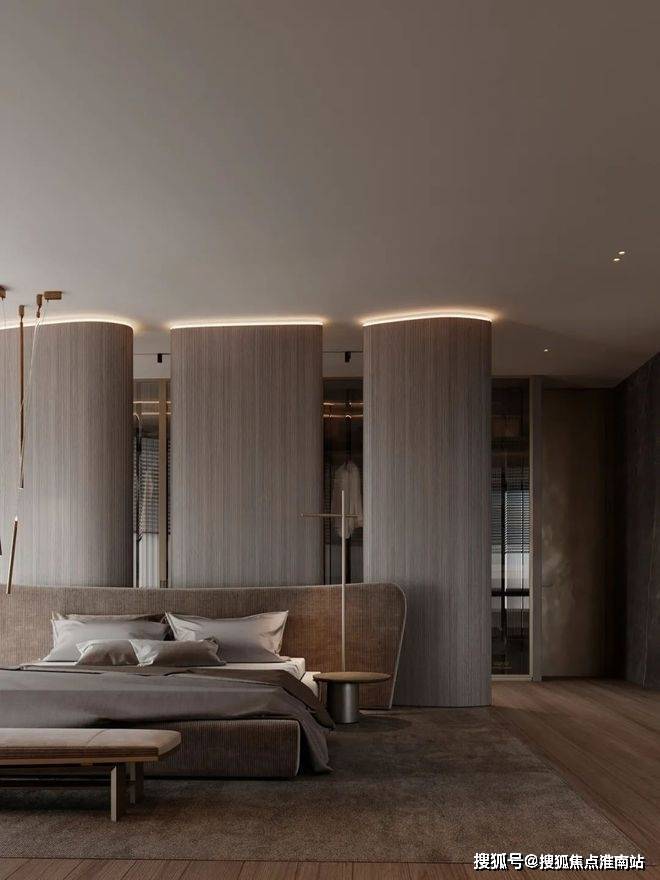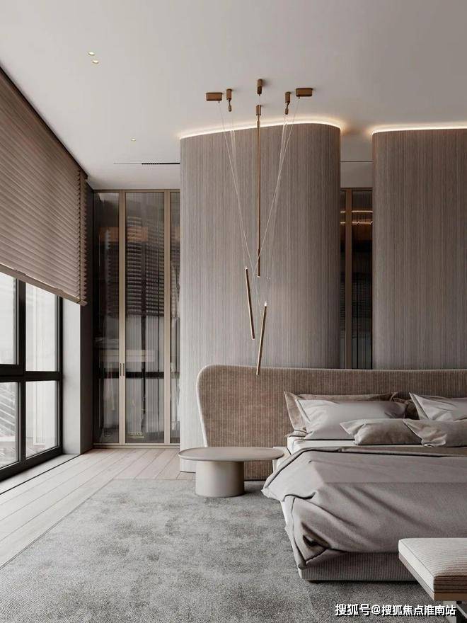 卧室空间设计得非常宽广,大面积的落地窗,给整个卧室带来了充足的光源。