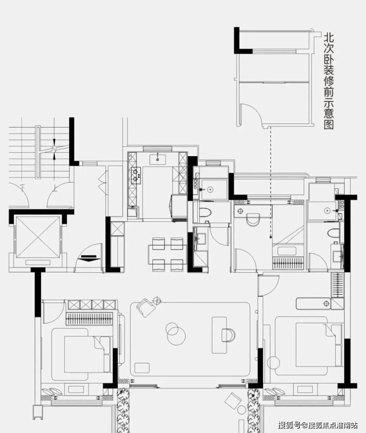 建面约120㎡,为3房2厅2卫布局,三开间朝南,约6米南向横厅,连接约17㎡花园露台,该户型是上个户型的扩大版,居住舒适度也更高,如果预算更高,这是个不错的选择。