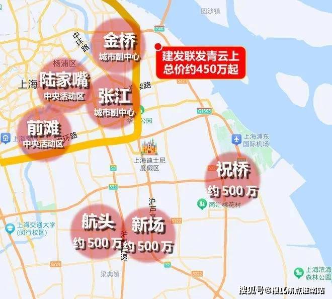 在目前浦东外环旁区域的新房价格体系中,三林约10万+、周浦约6万+、康桥约6.6万+、唐镇约7万+(来源:根据网上房地产公示数据整理),也就是说「建发联发青云上」从区位上看可以匹配约600-1000万才有的地段价值。