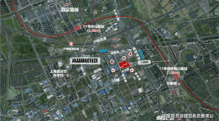 交通方面,地块距离11号线陈翔公路站直线1.6公里左右,沪宜公路、沪嘉高速、翔江公路等城市主干道环伺,交通能级高。