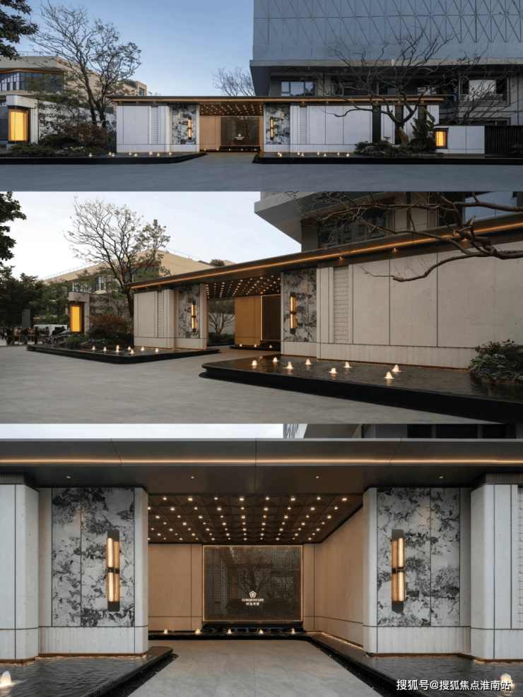 建筑语境 | 铝板玻璃 现代质感建筑立面选用米白与暖灰的现代轻奢色系,铝板线条+涂料一体板组合使用,简约线条设计,彰显现代典雅美学风格。