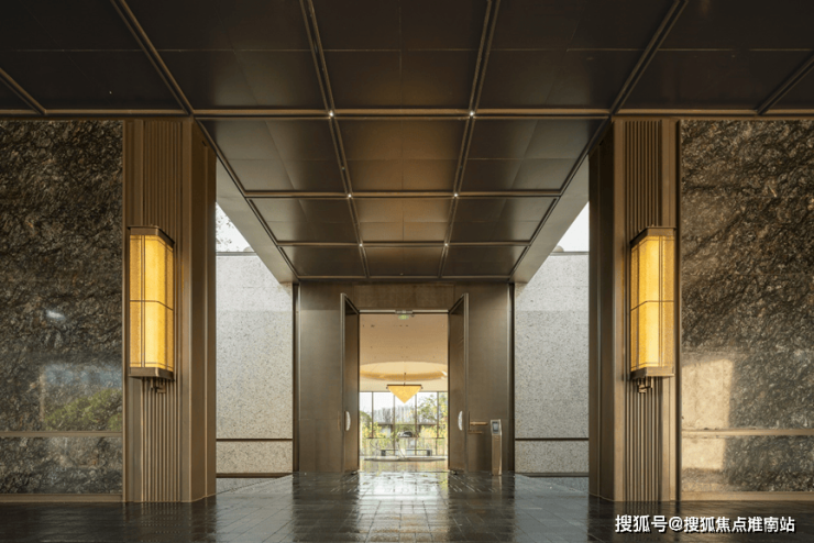 另外惊喜的是此次还展出了地下车库,车位整体采用环氧自流平工艺,车道融合自流平&超耐磨工艺,并以发光线条营造氛围高级感。与此同时地下大堂以海派风格发光板天花、浅色石材柱体搭配金属细节,通过人脸识别电动门开启归家仪式感。