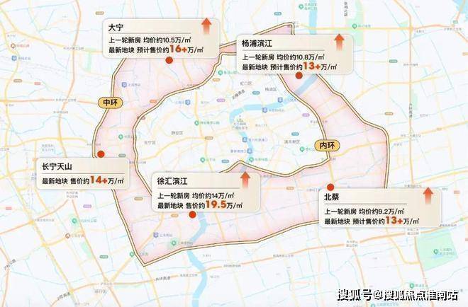 目前上海内中环新房的预计售价(按地价与成本测算仅供参考,以开发商官宣为准)全线超过13万/㎡,大宁预计16万/㎡,徐汇滨江更是站稳19.5万/㎡。