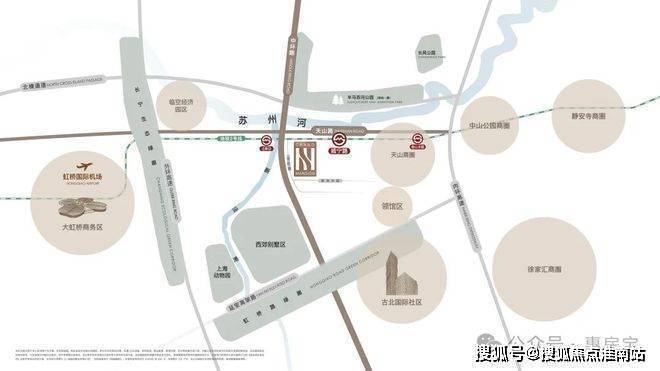 项目东至天山路31号、南至新渔东路、西至北虹路、北至天山路轨交变电站,近邻苏州河,距离地铁2号线北新泾站直线距离仅约300米。