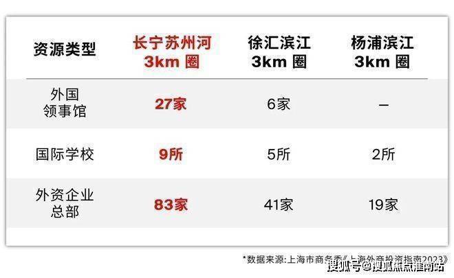 据上海市商务委《上海外商投资指南2023》数据显示,长宁涉外资源密度是徐汇滨江的2-3倍、杨浦滨江的4-10倍,是能够支撑国际客群支付溢价的!