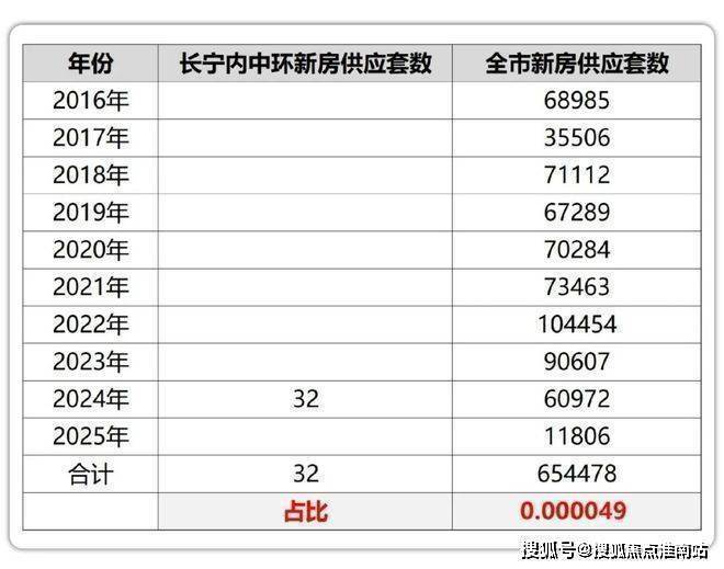 据网上房地产数据显示,近10年(2016年至今)全上海合计入市新房65万多套,其中属于长宁内中环的只有32套,占比仅约0.000049!