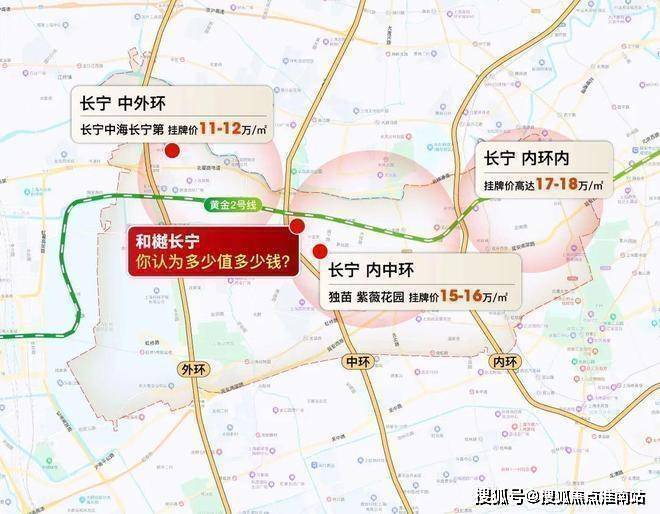 超然的稀缺性造就坚挺的价格,沿着黄金2号线,你可以看到长宁各环线的二手价格: