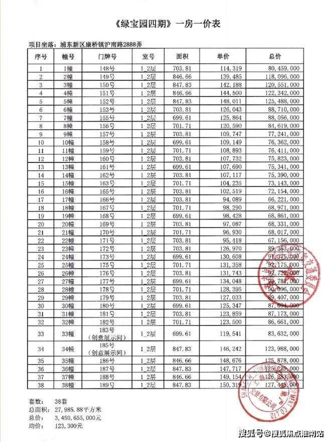 一房一价表: