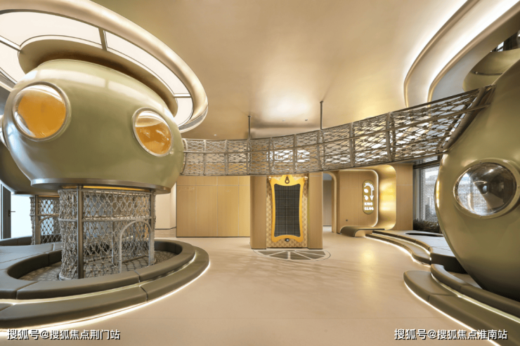 这还不够,它还把会所跟架空层上下连通,做出了一个完全不输专业儿童乐园的童玩区,里面有6米多高的旋转滑梯,有可以让小朋友穿梭玩闹的「魔法树洞」,有巨大的空中攀爬网架,还有儿童KTV室和小朋友最爱的玩角色扮演的小厨房……
