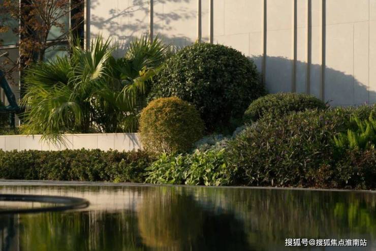 △ 景墙前高低错落的花境组团,将小区藏纳于自然,亦将自然融入生活,让闹市的喧嚣在这一刻归于平静