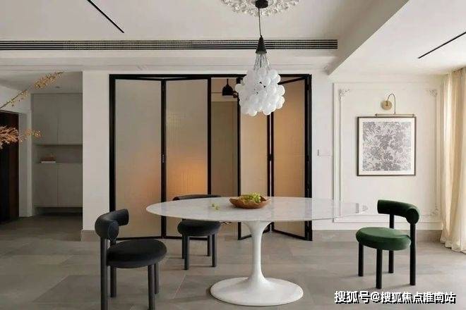 餐厅与多功能房之间采用长虹折叠玻璃门隔断,在艺术与生活之间找到了完美的平衡点。